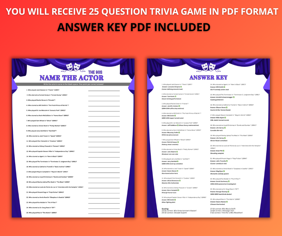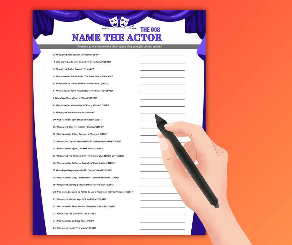 Welcome to the decade that changed entertainment forever! Step back into the era of blockbuster movies, must-see TV, and unforgettable performances with our 90s Throwback Challenge Actor Trivia Game.