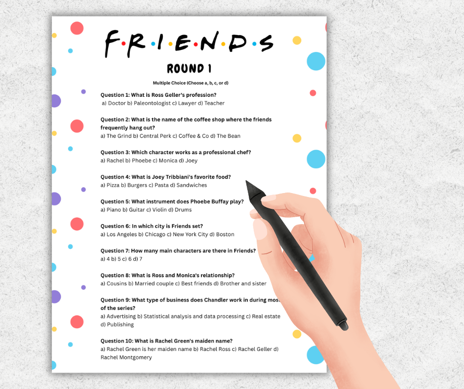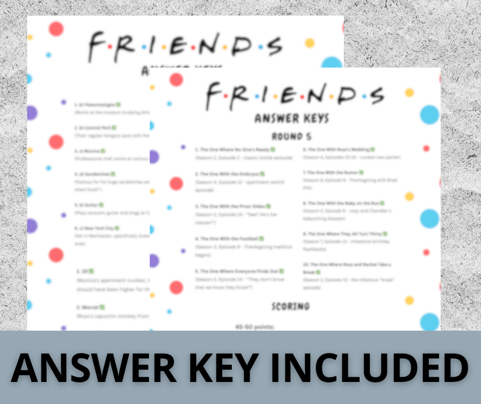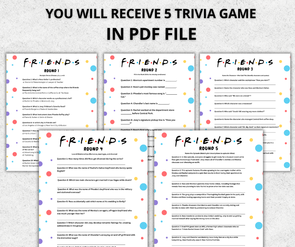Ready to test your Friends knowledge? Download instantly and prove you’re the one with all the answers!