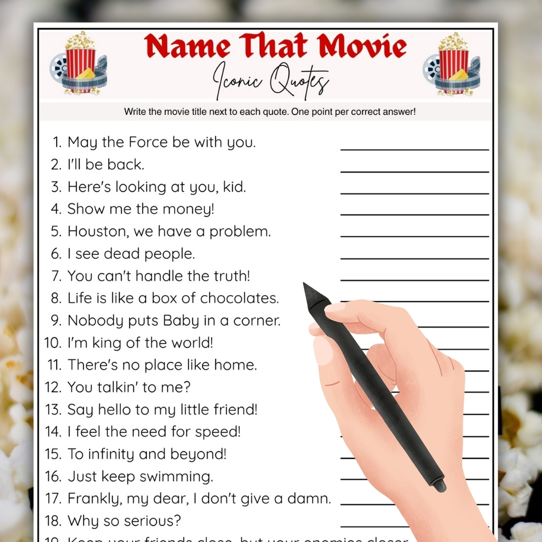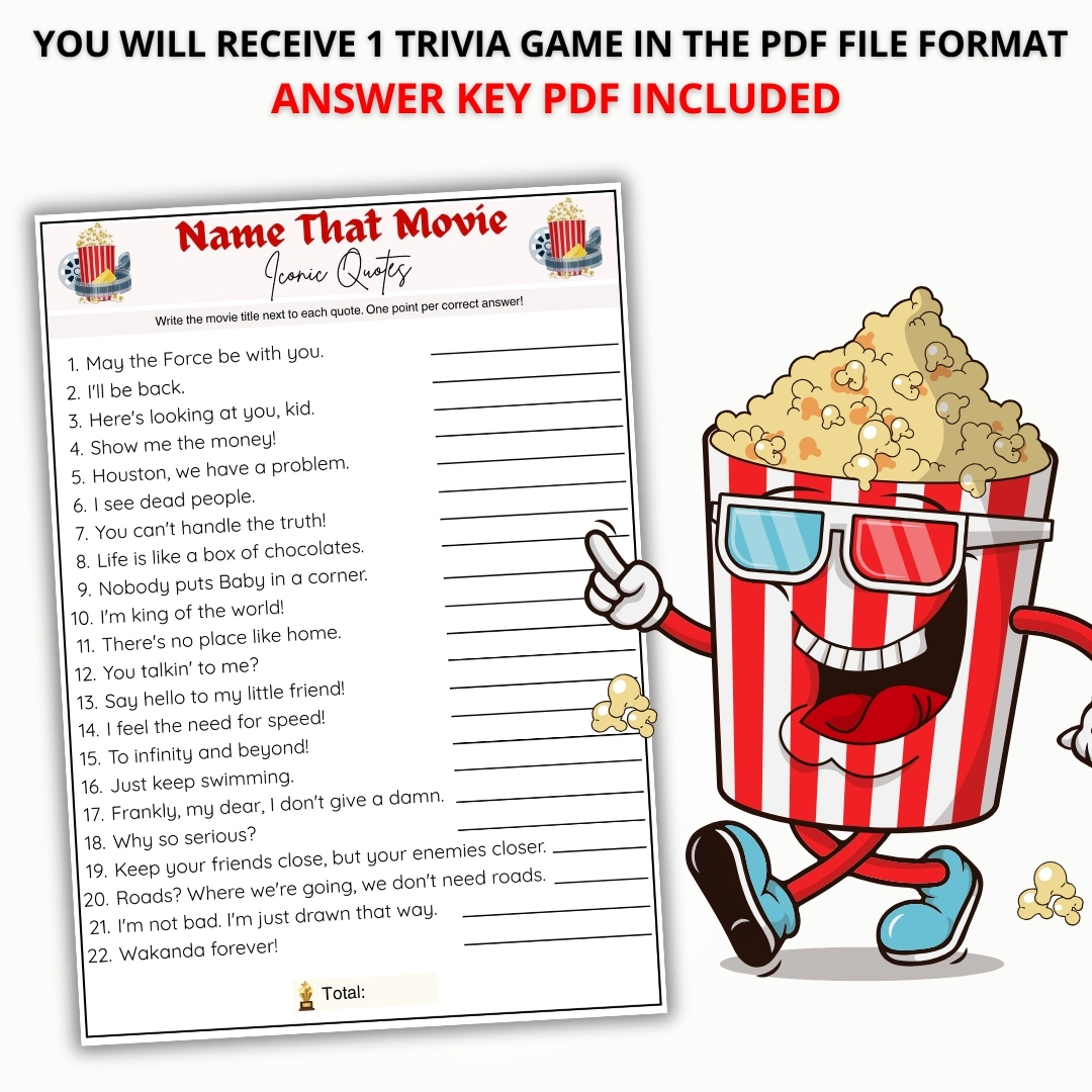 your friends with Hollywood’s most memorable quotes in this entertaining trivia game!