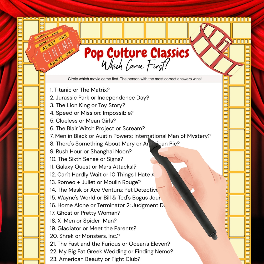 Movie Timeline Trivia Game | 25 Questions | Printable PDF
